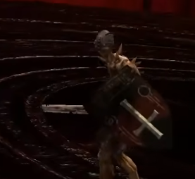 Luego de una 8 o 9 horas terminé el juego, me gustó bastante. Ya llegando al final, en el círculo de “Violencia”, enfrentamos a un nuevo enemigo llamados “Cruzados Malditos”, los que portan el siguiente escudo: