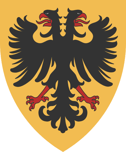 “De oro, un águila exployada de sable, picada, lampasada, membrada y armada de gules”